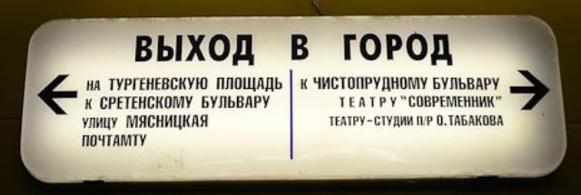 Antes de empezar, un ejemplo a modo de terapia de choque. Imagina que coges el metro en Rusia y, al llegar a tu parada, te encuentras este cartel justo antes de la salida. Sin una traducción estarías, literalmente, perdido.