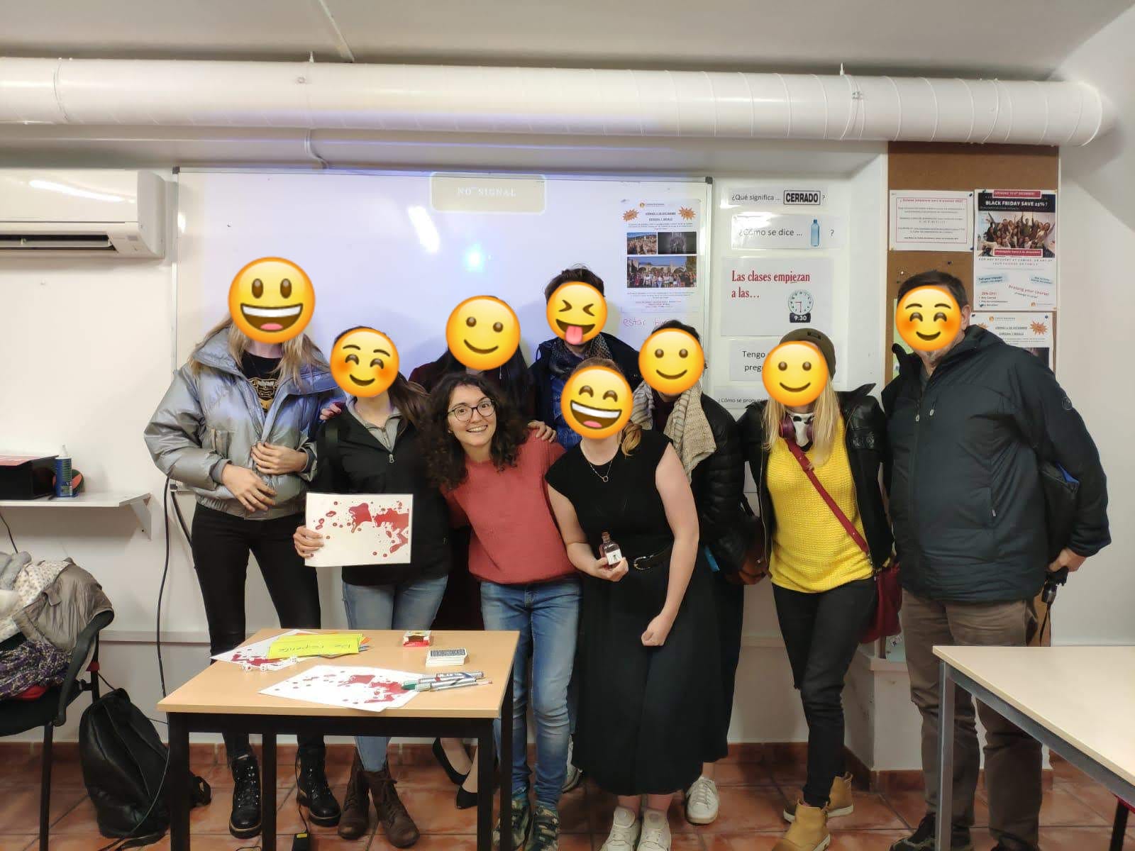 Tras trabajar algunos años en una empresa de traducción como Account Manager, hice un curso para formarme como profesora de español para extranjeros (ELE) y un máster de formación de profesorado. Abajo puedes verme con algunos alumnos. (Sí, siempre me superan en estatura).